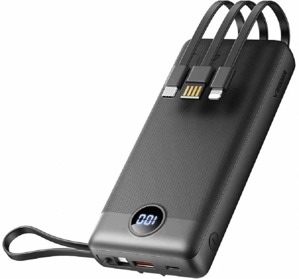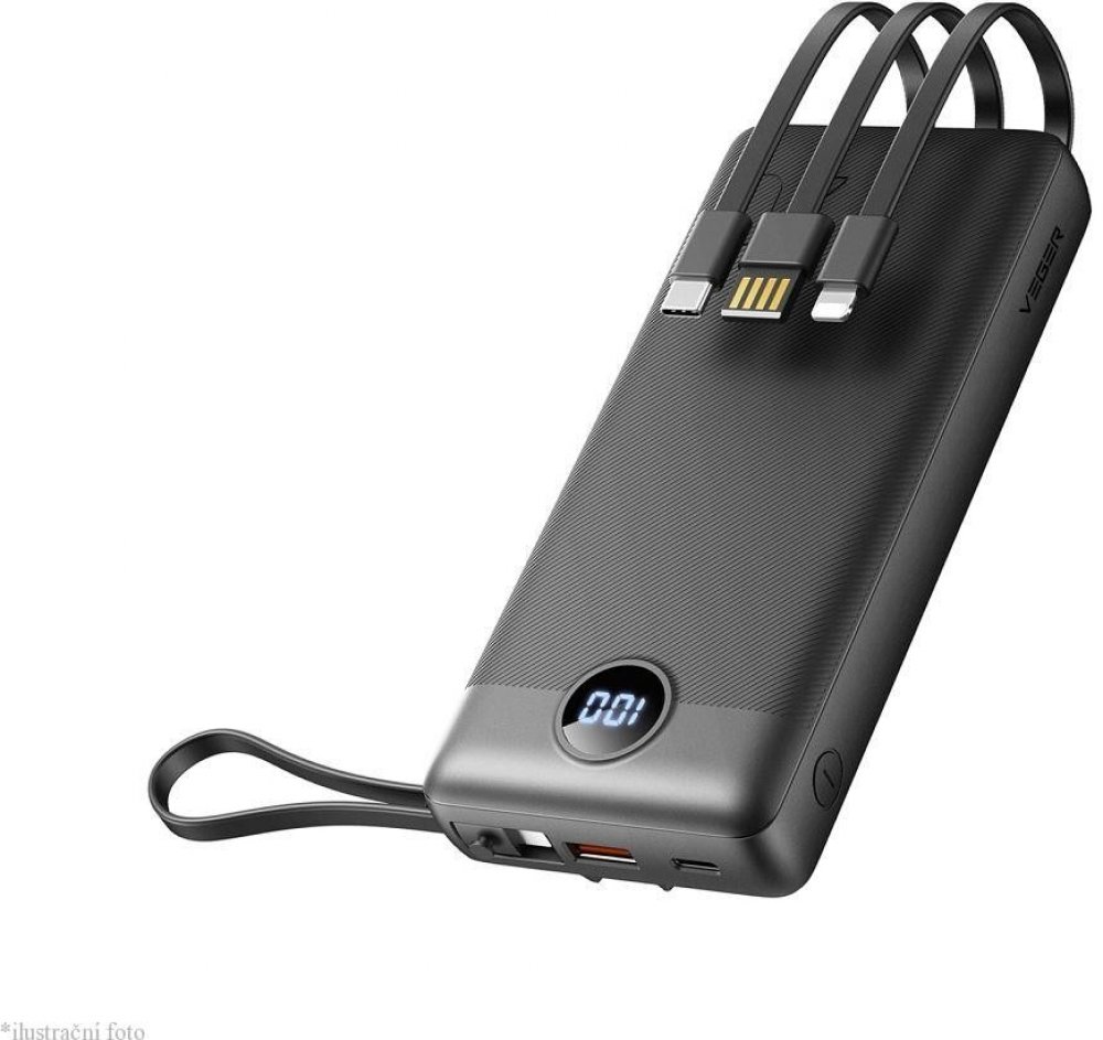 Powerbanka Veger C20 s kapacitou 20 00 mAh je zárukou rychlého nabíjení jakéhokoliv zařízení a kdekoliv. Díky 4 vestavěným kabelům v tenkém těle je Veger C20 nejpohodlnějším přenosným řešením pro nabíjení vašich zařízení. Tři výstupní kabely (USB-C, Micro USB a Lightning) a 1 vstupní kabel (USB-A) zaručují konektivitu s naprostou většinou mobilních zařízení na trhu. C20 vám umožní vyhnout se nošení dalších kabelů při nabíjení různých zařízení. Zároveň se již nemusíte obávat, že se nabíjecí kabely navzájem zamotají.