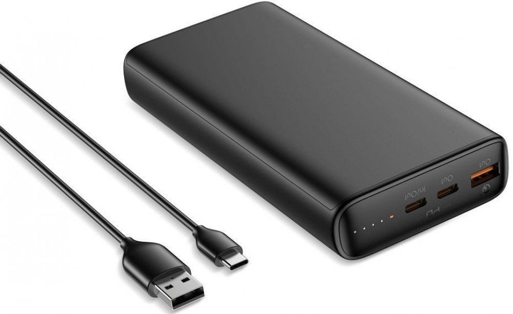 Specifikace: Kapacita baterie: 20 000 mAh (74 Wh) Napětí baterie: 3,7 V Maximální napětí: 5A Výkon: 100 W Materiál: plast Porty: 2x USB-C, USB-A Kabel: USB-A - USB-C Rozměry: 156,7 x 74 x 25 mm Hmotnost: 382 g Podporované technologie: Power Delivery (100 W) a Quick Charge 3.0