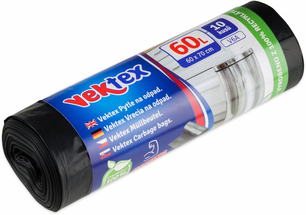 Vektex pytle na odpad, silné 24 µ, rozměr pytle 60 x 70 cm, objem 60 l, balení 10 kusů. Kvalitní odpadkové pytle pro ukládání odpadu z domácnosti nebo zahrady. Odolné a pohodlné použití.