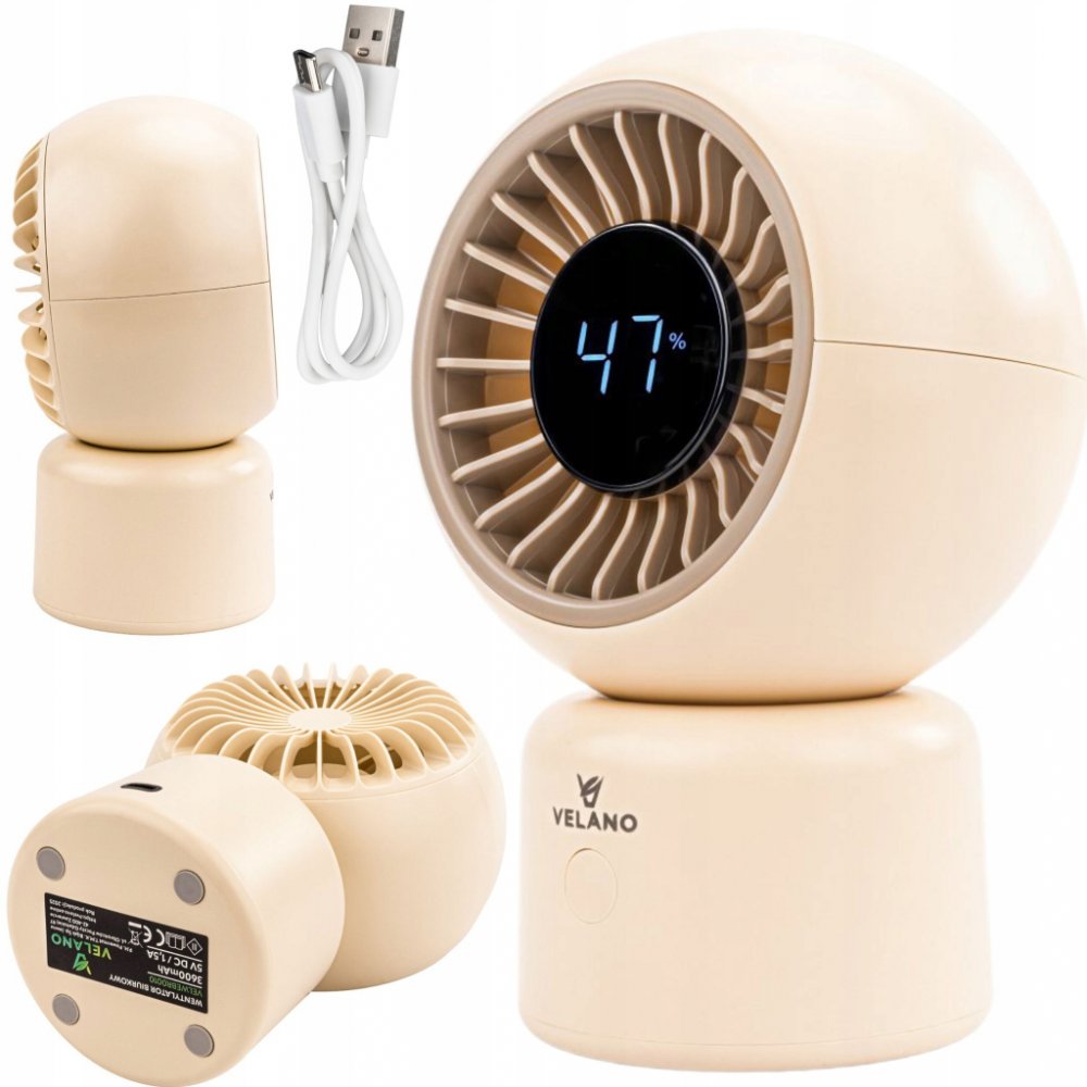 Stolní akumulátorový ventilátor Velano VELWEBS0010 s oscilační funkcí a LCD displejem