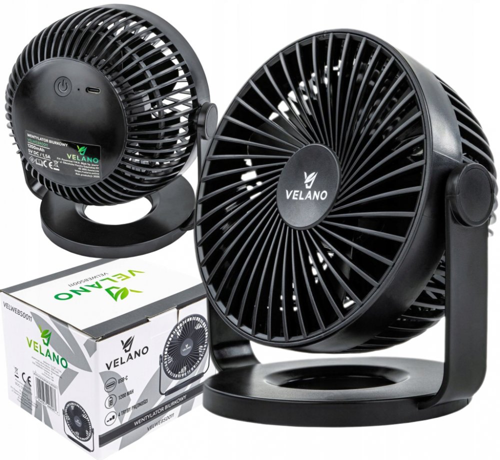 Kompaktní stolní ventilátor Velano VELWEBS0011 s akumulátorem 1200 mAh je praktickým řešením pro domácnost, kancelář i cestování. Díky čtyřem úrovním nastavení proudění vzduchu, tichému chodu a možnosti naklápění hlavice poskytuje flexibilní a pohodlné ochlazení v každé situaci.