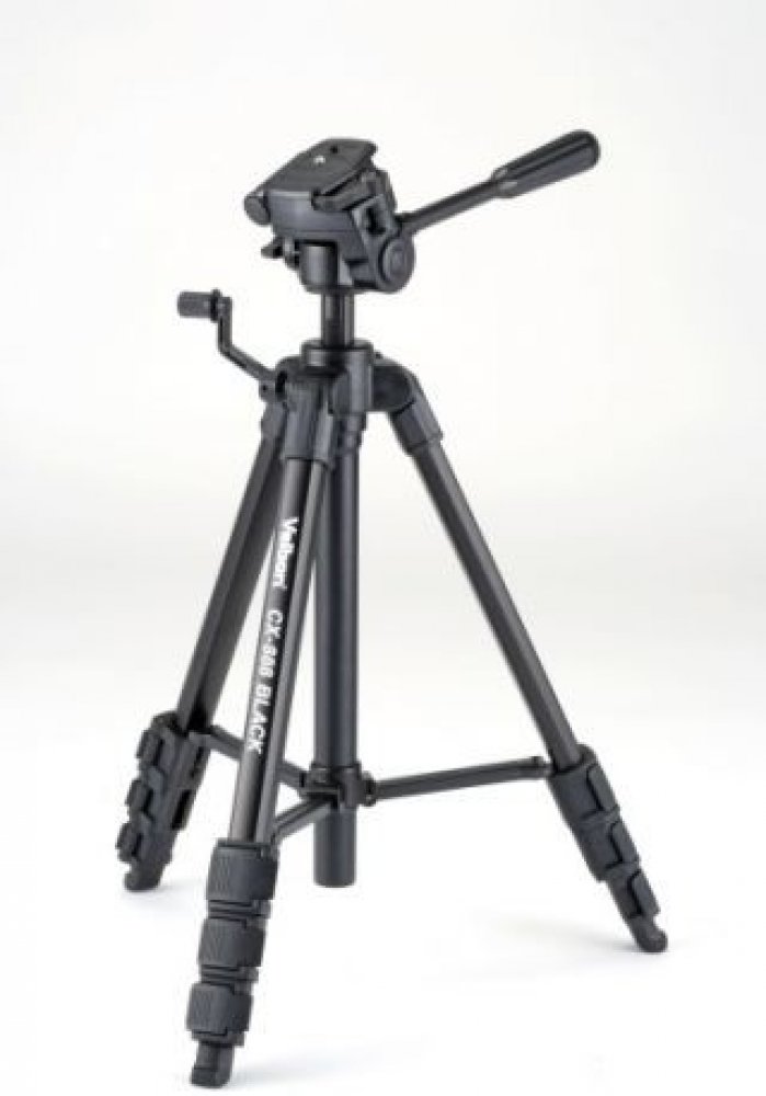 Kvalitní a cenově dostupný stativ pro kompaktní, Ultra Zoom digitilání fotoaparáty a digitální zcadlovky se základním objektivem se vyznačuje vynikající stabilitou, kvalitou použitých materiálů, praktickým a rychlým ovládáním výšky a polohování hlavy ve třech osách. CX-888 je vyroben z odlehčeného hliníku v kombinaci s plastovymi komponenty, je osazen pevnou tříosou hlavou s rychloupínacím mechanismem. CX-888 má čtyřdílné nohy - délka stativu ve složeném stavu je pouze 48cm. Zakončení noh odpruženými gumovými patami, tlumícími vibrace. Plynulý a přesný posuv středové tyče je zajištěn kličkou a ozubeným převodem. Radiální vzpěry mezi nohami a středovou tyčí zvyšují celkovou stabilitu stativu. Stativ CX-888 je dodáván včetně pouzdra s ramenním popruhem. Stativ má elegantní matně černou barvu.