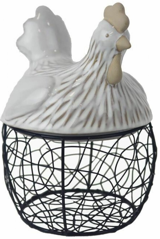 košík na vajíčka s keramickou slepicí jako víkem — velmi oblíbená dekorace do kuchyně nebo na velikonoční období.