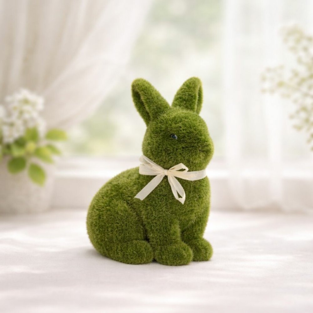 Figurka POLY je jedinečná dekorace, která vnese do vašeho interiéru jarní svěžest a jemné kouzlo. Její povrch připomínající mech a jemná mašle z ní dělají ideální volbu na sváteční stůl nebo komodu.