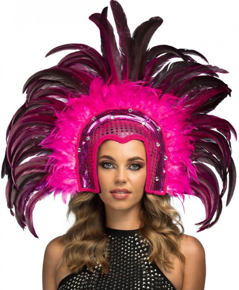 Čelenka Samba růžováBudete jako skutečná hvězda s touto velkolepou čelenkou brazilské showgirl ve výrazné růžové barvě s třpytivými flitry a svěžím peřím. Zaručeně upoutáte pozornost během karnevalu, maškarního večírku, nebo tanečního vystoupení. Materiál: 34% pvc , 30% polyester , 30% peří, 3% pet 3% acryl