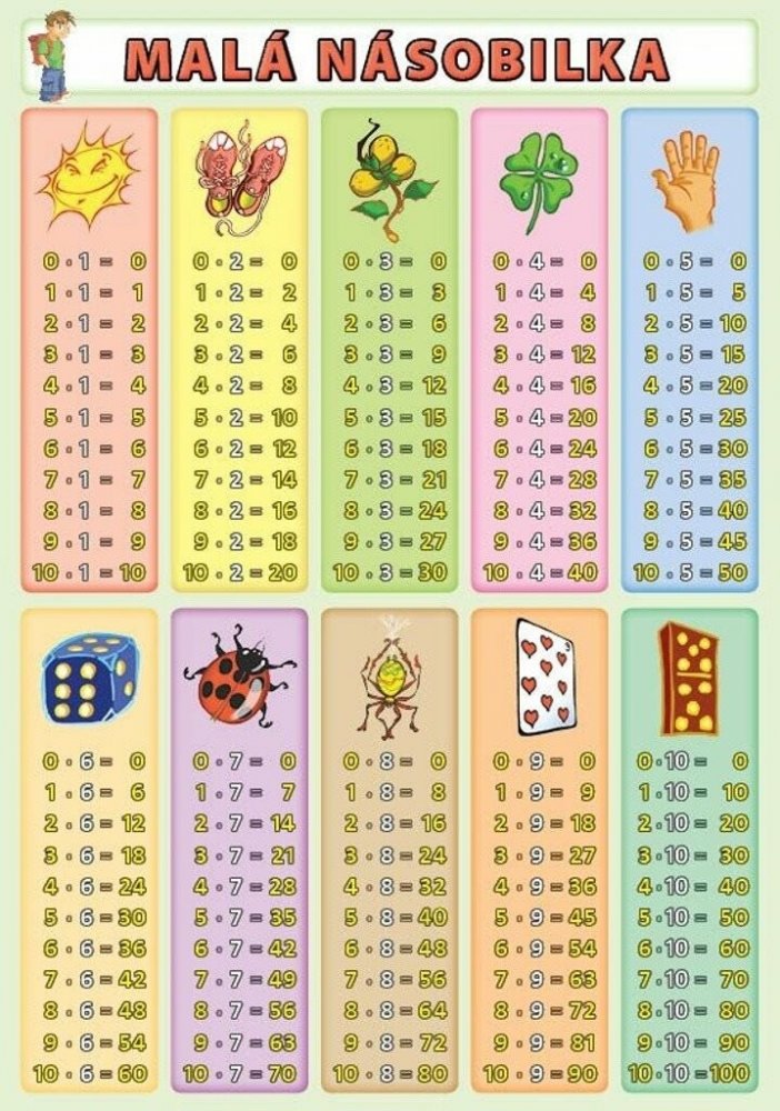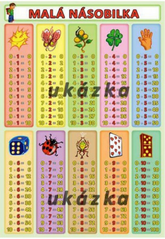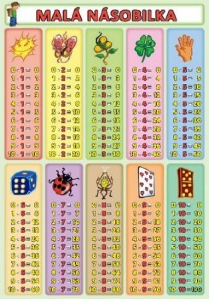 Výuková tabulka. Přehledně zpracovaná malá a velká násobilka v praktickém formátu A5