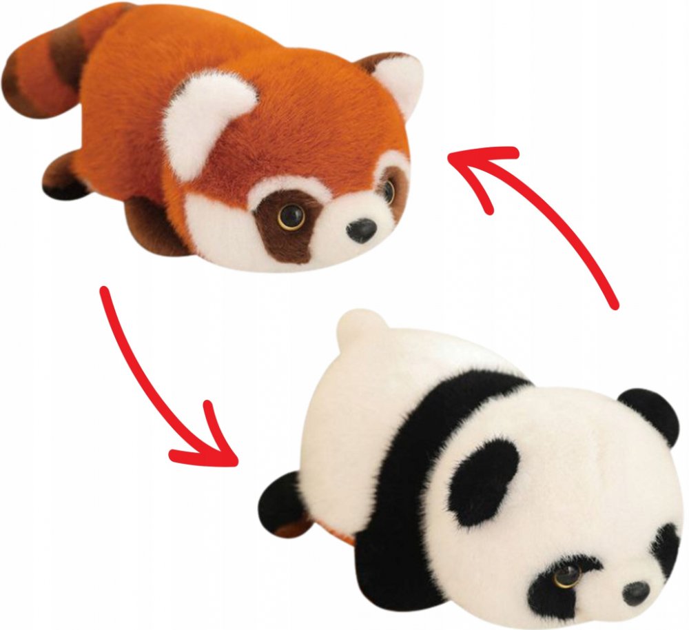 ⭐ Seznamte se s jedinečnou plyšovou maskotou, která se dokáže změnit během okamžiku! Na jedné straně panda, na druhé panda – dvě roztomilá zvířátka v jednom plyšákovi! Měkká, bezpečná a ideální na mazlení – udělá radost každému dítěti