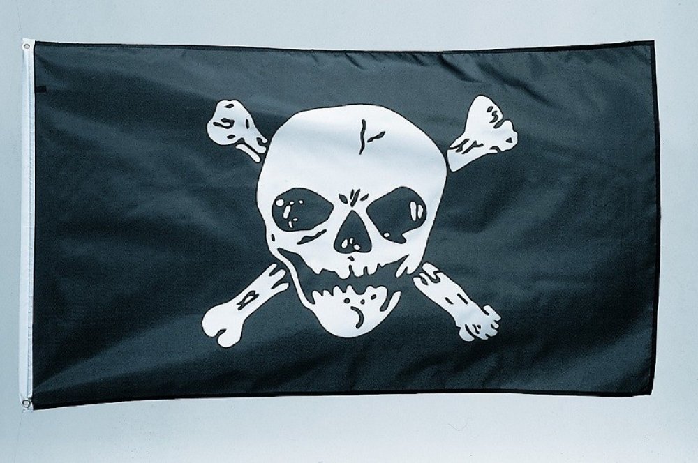 Když už pořádáte pirátskou party, tak ať o tom všichni ví. Vyvěste do okna nebo na zahradě pirátskou vlajku s lebkou! Takhle k vám dorazí všichni správní piráti z okolí a rum poteče proudem! Černá vlajka s lebkou a zkříženými hnáty má rozměry 150 x 90 cm.