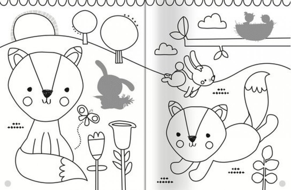 Príď sa zoznámiť so šťastnými mláďatami, ktoré sa už nevedia dočkať, kedy sa s nimi budeš môcť hrať. Nalep samolepky na každú stranu tejto maľovanky a vytlač si roztomilé závesné obrázky na dvere a zábavné hádanky z pevných strán na konci zošita.