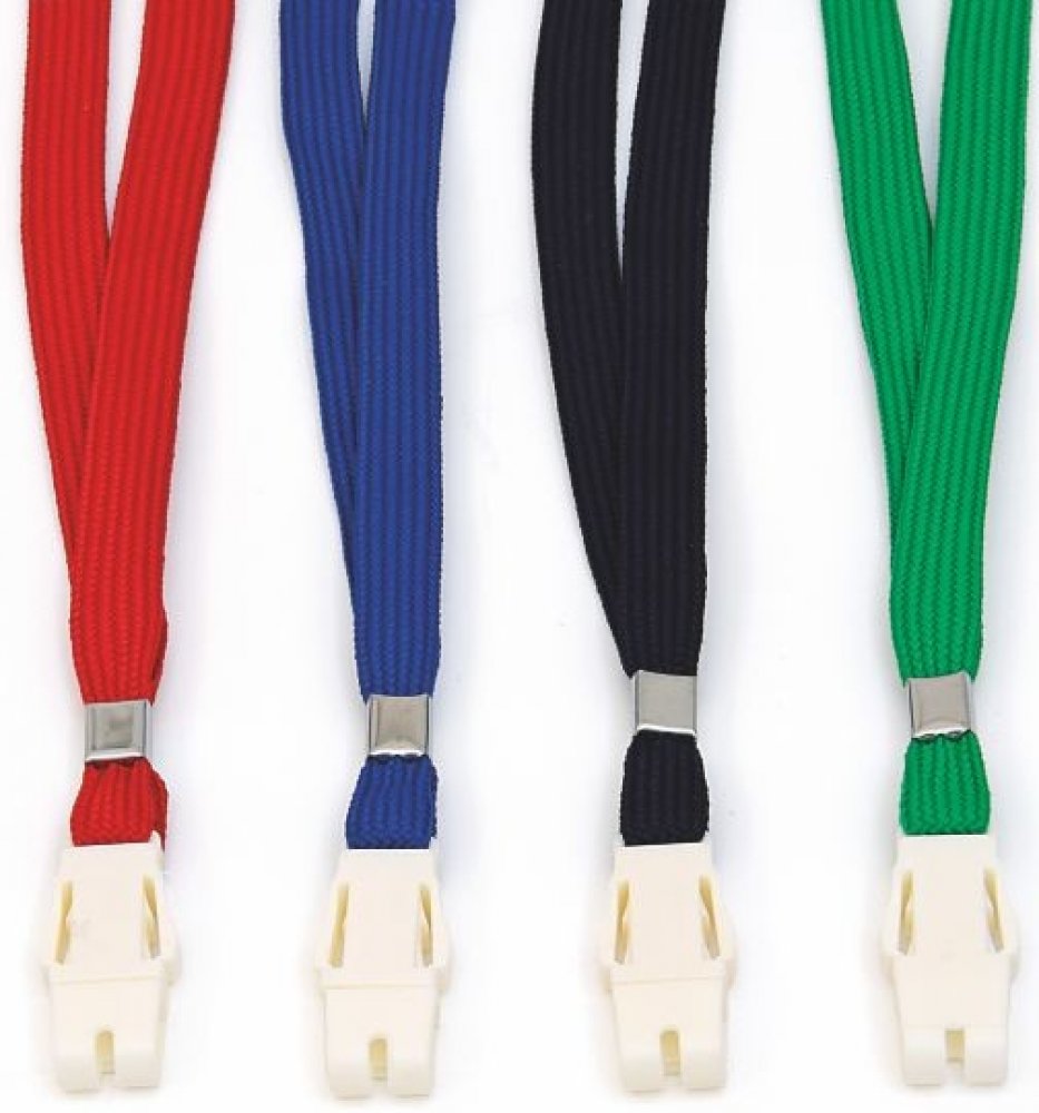 - pásek na krk vhodný k identifikátoru či klíčů na konci plochého trojzubce pojistný klip šířka 10 mm, délka 45 cm barva modrá balení 50 ks