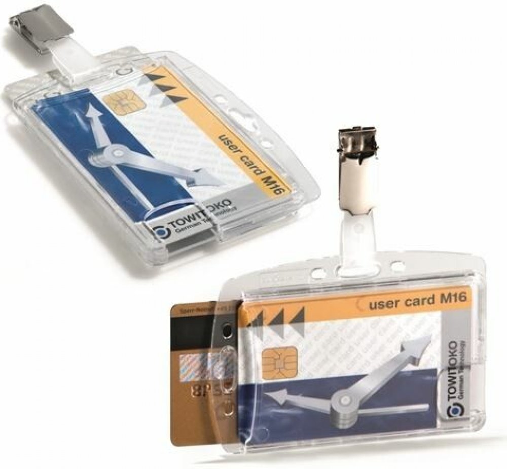 Pevné, akrylátové, ochranné pouzdro s otočným klipem pro 2 kartyDrážka pro rychlý a snadný přístup ke kartámMožnost použít horizontálně i vertikálněLze kombinovat s řetízkem, textilní páskou nebo rolo-systémemRozměry: 8,5 x 5,4 cm (š x v)Balení obsahuje 25 ks