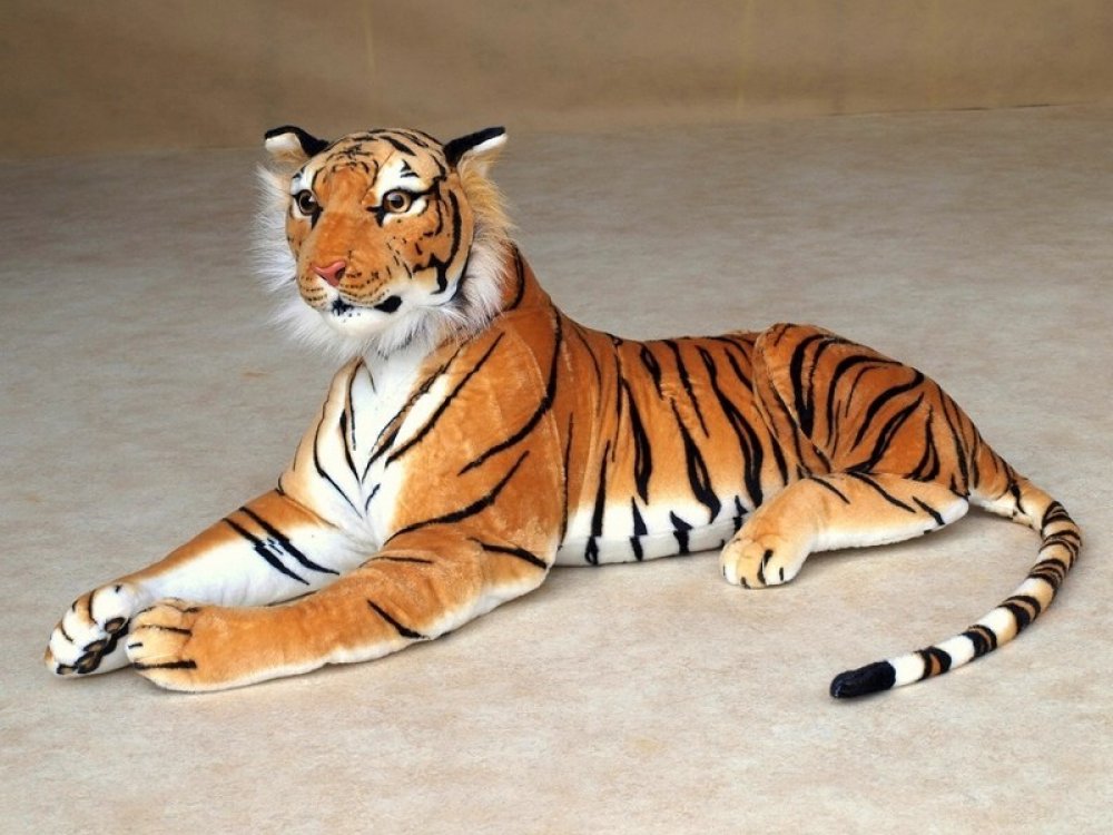 - Veliký plyšový tygr ležící oranžový, délka těla s ocasem 170cm,