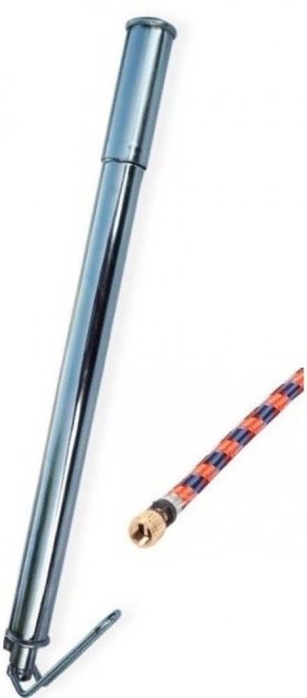 Hustilka nožní s hadičkouUrčeno pro ventil: MOTO - AVDélka: před smáčknutím 365mmDélka: po smáčknutí 345mmProvedení: chromováRučka: kovováBalení: krabička Velobel
