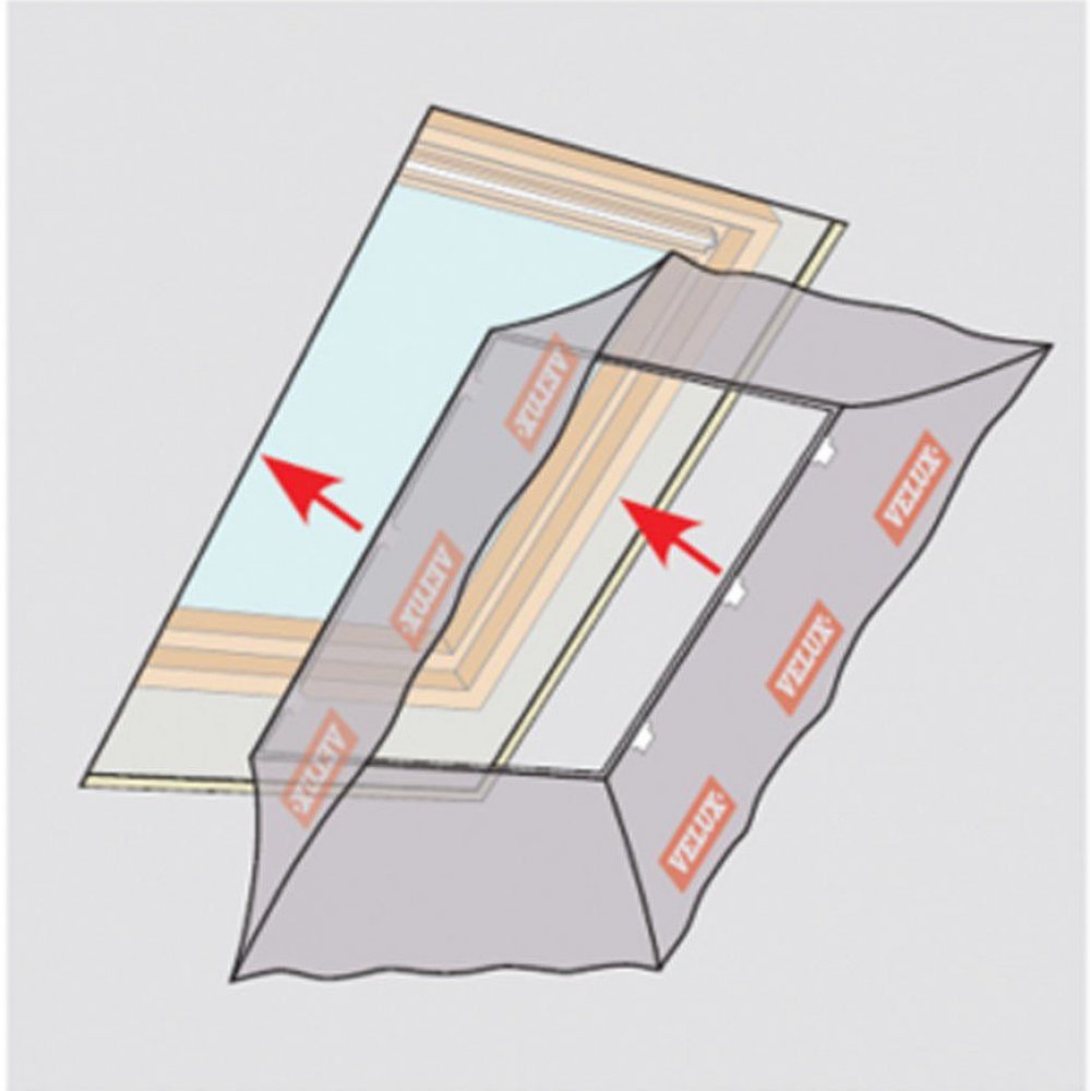 Parotěsná fólie do ostění VELUX BBX Fólie BBX zajišťuje bezpečné a těsné spojení mezi rámem střešního okna VELUX a parotěsnou fólií střešního pláště. Parotěsná fólie s difuzní propustností Sd=75 m včetně těsnění a vrutů pro těsné upevnění do drážky rámu okna. Výrobek BBX zajišťuje snadné provedení parozábrany kolem vnitřního ostění okna. Díky přizpůsobení výrobku tvaru a rozměru okna a ostění se velmi snadno instaluje. Materiál Fólie je vyrobena z PE hmoty (Polyetylen). Montáž Parotěsná fólie BBX je založena do drážky v rámu střešního okna VELUX a následně spojena s parotěsnou fólií ve střešním plášti. Parotěsné spojení nezi fólií BBX a rámem okna je zajištěno těsněním a vruty, které jsou součástí této sady. Charakteristika: • Zajišťuje důkladné a vzduchotěsné spojení rámu okna a střešního pláště • Nalisované gumové těsnění po celé délce stran zaručuje 100% neprodyšné napojení • Snadno a rychle se montuje díky přizpůsobení velikosti a tvaru ostění a okna • Zajišťuje ochranu přípaného vnitřního zateplení před vlhkem. Parotěsná fólie VELUX BBX 0000 slouží k dokonalému a těsnému napojení rámu okna na okolní parotěs střešního pláště. Jedná se o vytvarovanou a v rozích svařovanou nepropustnou fólii, kopírující tvar a rozměry ostění.