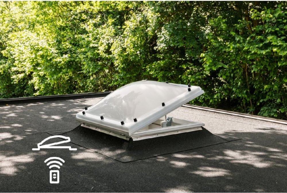 Dálkově ovládaná základna světlíku VELUX CVJ 1210 na elektrický pohon je ideálním řešením pro neobydlené a nevytápěné prostory, jako jsou sklady, garáže, dílny, kůlny nebo menší průmyslové budovy. Poskytuje spolehlivé větrání a odvod vlhkosti s jednoduchou instalací jak u novostaveb, tak při rekonstrukcích.