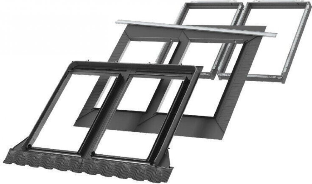 Zateplené kombi lemování Velux pro sestavu oken v profilované krytině do výšky 120 mm AL. Nastavitelná vzdálenost mezi rámy 100–160 mm.