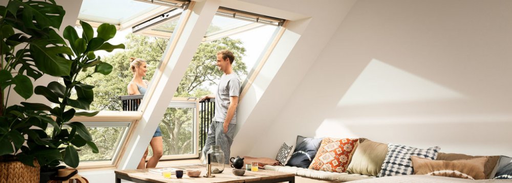 Střešní balkonové okno GDL Cabrio umožňuje rozevřením sestavy dvou oken vytvořit balkon bez dalších stavebních úprav a zabrání podlahové plochy. Po uzavření balkonu splyne se střechou a je vhodný i pro kombinace s dalšími střešními okny VELUX.