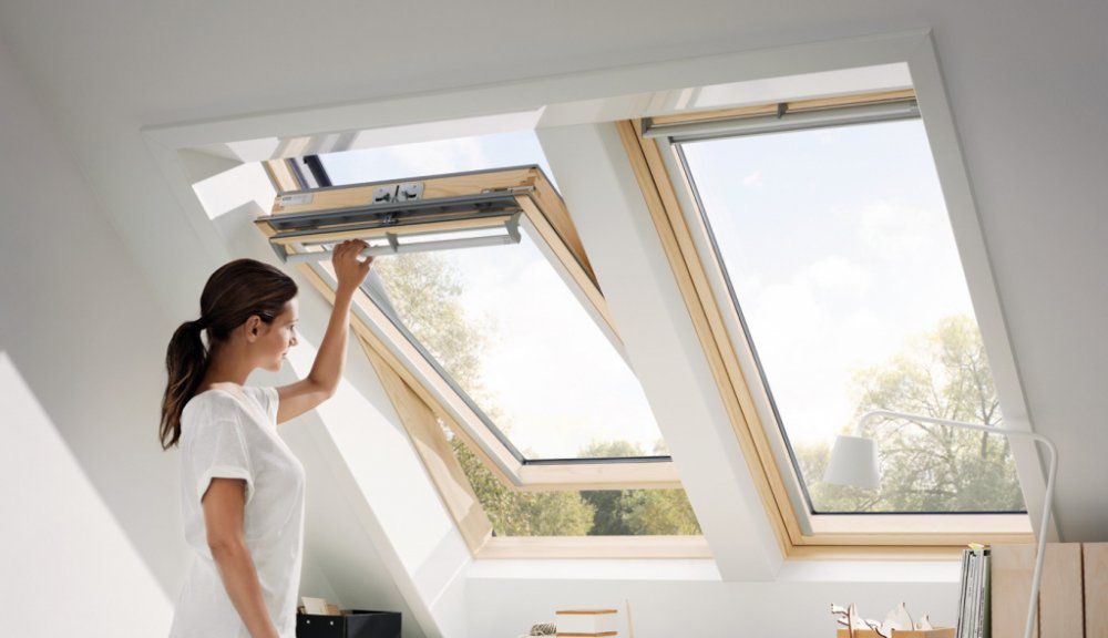 Střešní okno řady Premium s horním ovládáním pro energetickou úspornost a komfort. Horní madlo umožňuje snadnou montáž v různých výškách. Umístěte pod něj stůl nebo pohovku a stále získáte pohodlné otevírání.