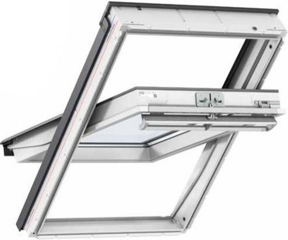 Bílé kyvné střešní okno s "oplášťováním" hladkým polyuretanem v bílé barvě VELUX GGU 0068 má štíhlý ráme a izolovanou konstrukci a také větší plochou zasklení. Zasklení VELUX --68 (bezpečné izolační trojsklo, lepené sklo s fóliemi, reflexní vrstva, samočistící vrstva, úprava proti rosení). Koeficient Uskla= 0,7 W/m2K, Uokna= 1,1 W/m2K.