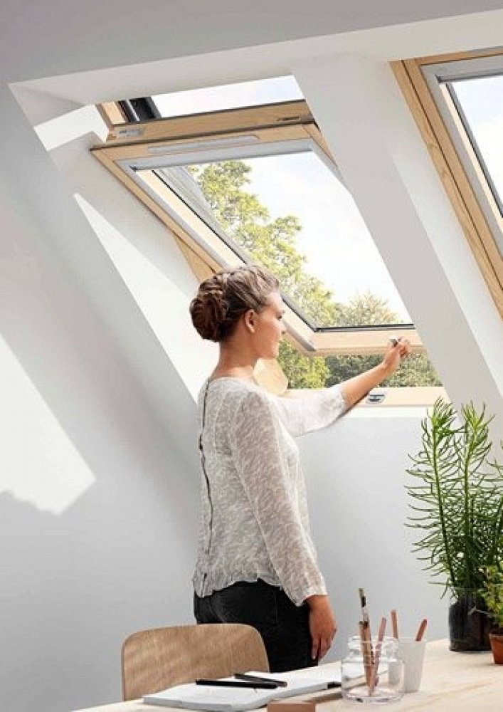 Střešní okno Velux GLL 1055 se otvírá pomocí hroního madla. Pod okno můžete umístit nábytek, například pracovní stůl, na který tak bude dopadat přirozené denní světlo. Horní ovládací madlo bude i nadále pohodlně přístupné.Díky novému systému izolace využívajícímuu technologii VELUX thermoTechnology a speciálnímu těsnění má okno vynikající izolační vlastnosti.