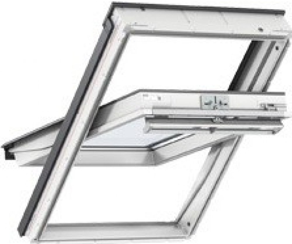 Kyvné bezúdržbové střešní okno VELUX GLU 0061 s dřevěným rámem, potaženým 3-5mm vrstvou bílého polyuretanu s ekonomickým trojsklem a koeficientem prostupu tepla sklem Ug = 0,6 W/m2K.