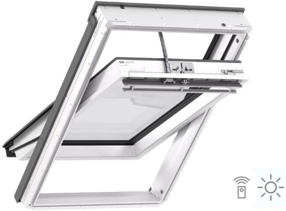 Bílé dálkově ovládané kyvné střešní okno VELUX GLU 0061Z30A Integra je vybavené motorem na solární pohon zabudovaným z výroby. Součástí balení je dálkový ovladač a dešťový senzor. Okno má bezúdržbové bílé provedení s polyuretanovým povrchem a dřevěným jádrem. Díky izolačnímu trojsklu --61, systému ThermoTechnology™ a speciálnímu těsnění nabízí vynikající energetickou účinnost. Koeficient Uw = 1,1 W/m²K.
