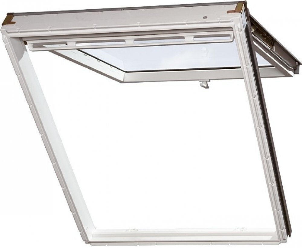 Jednoduchý styl ovládání střešního okna VELUX GPU - dolní klikou. Střešní okna GPU je možno otevírat klikou umístěnou ve spodní části okna s vyklopením okna směrem ven až do polohy 45°. Pro jednoduché umývání lze okno přepnout na kyvné otevírání a tím umožnit přetočení okenního křídla o 160°. V této poloze lze využít pojistku, kterou se křídlo zafixuje a tím je umožněno jeho bezpečné mytí.