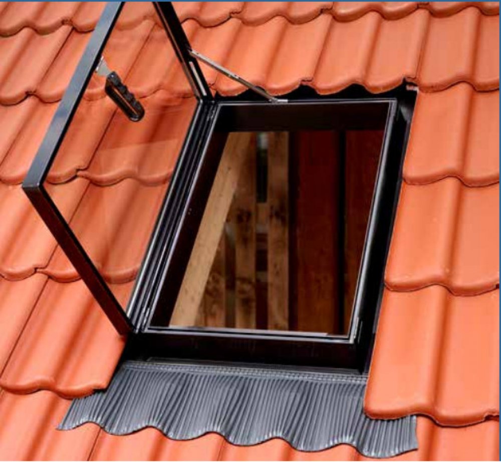 Bezúdržbový světlík GVK s integrovaným lemováním je určen do neizolovaných, nevyhřívaných prostor. Malý světlík s rozměrem výlezu 460 x 610 mm je ideální pro půdy nebo podkrovní skladovací prostory, kde stavebníci, kominíci a jiní řemeslníci potřebují mít přístup na střechu. Vlastnosti Může být namontováno do střech se sklonem 20° až 65°. Toto okno je dodáváno s izolačním zasklením. Okenní rám a lemování jsou dodávány s polyuretanovým nátěrem v černé nebo cihlově červené barvě, který odolává vlivům počasí. Křídlo je z profilovaného hliníku. Klika je standardně na levé straně, ale před montáží je možné ji přehodit na pravou stranu. Patentovaný bezpečnostní omezovač otevření brání oknu, aby se prudce neotevřelo a neudeřilo do střechy. Integrované univerzální lemování pro ploché i profilované střešní krytiny až do tloušťky 6 cm*. Rozměr výlezu: 460 mm x 610 mm Díky třem zářezům na klice může být okno zajištěno ve třech větracích polohách. Světlík je standardně dodáván se závěsy na boku a klikou na levé straně. Před montáží je možné závěsy a kliku přehodit na druhou stranu. *Není určeno pro falcované plechové krytiny.