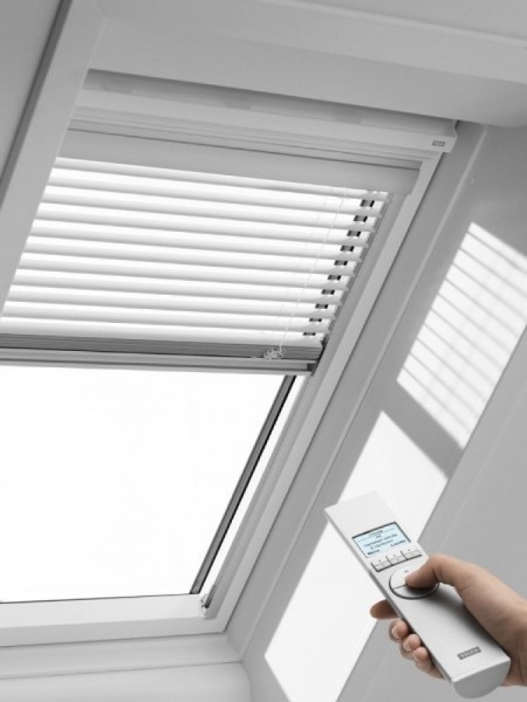 - podle příkazů z externího snímače slunečního světla ovládá venkovní rolety VELUX INTEGRA