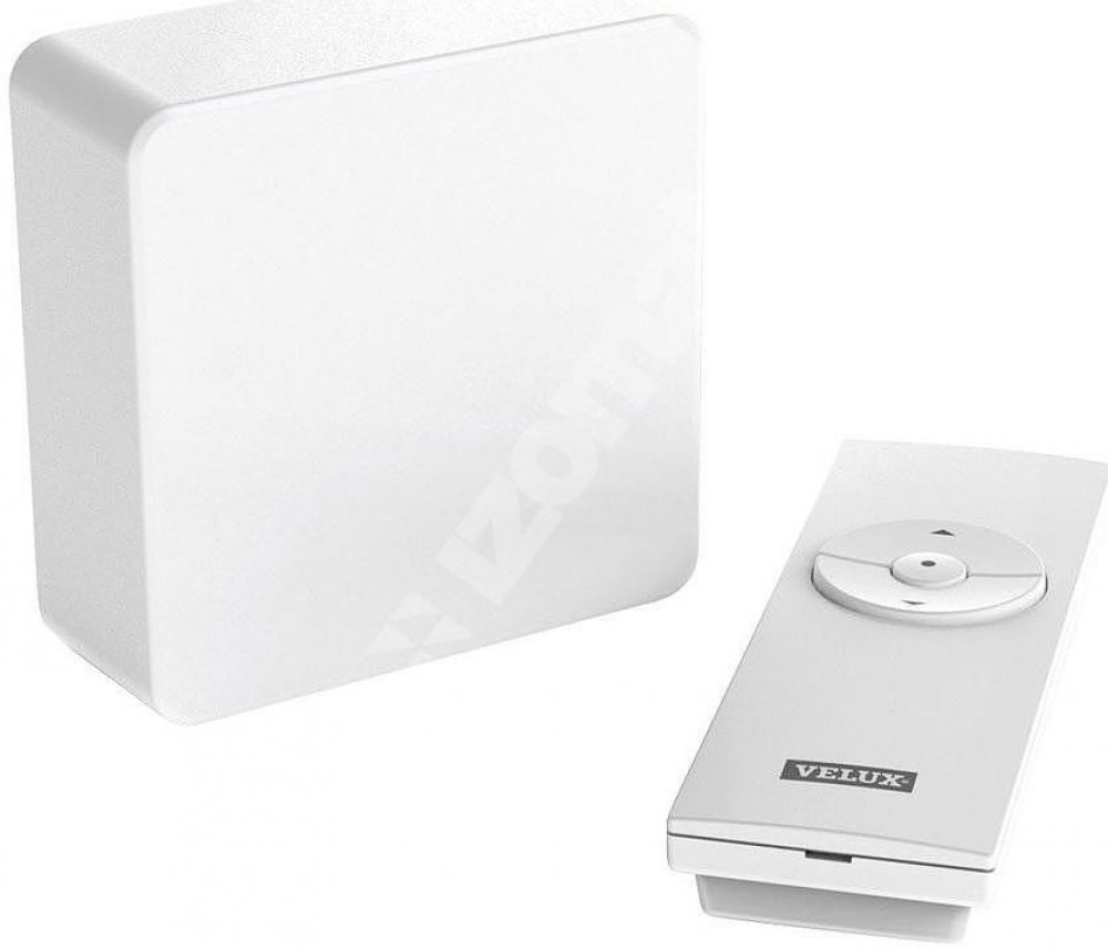 Velux KUX 100 - Ovládací systém pro jeden až pět prvků. Osazení elektricky ovládaného venkovního nebo vnitřního doplňku na manuálně ovládané okno. Velmi jednoduché řešení pro stahování a vytahování doplňků.