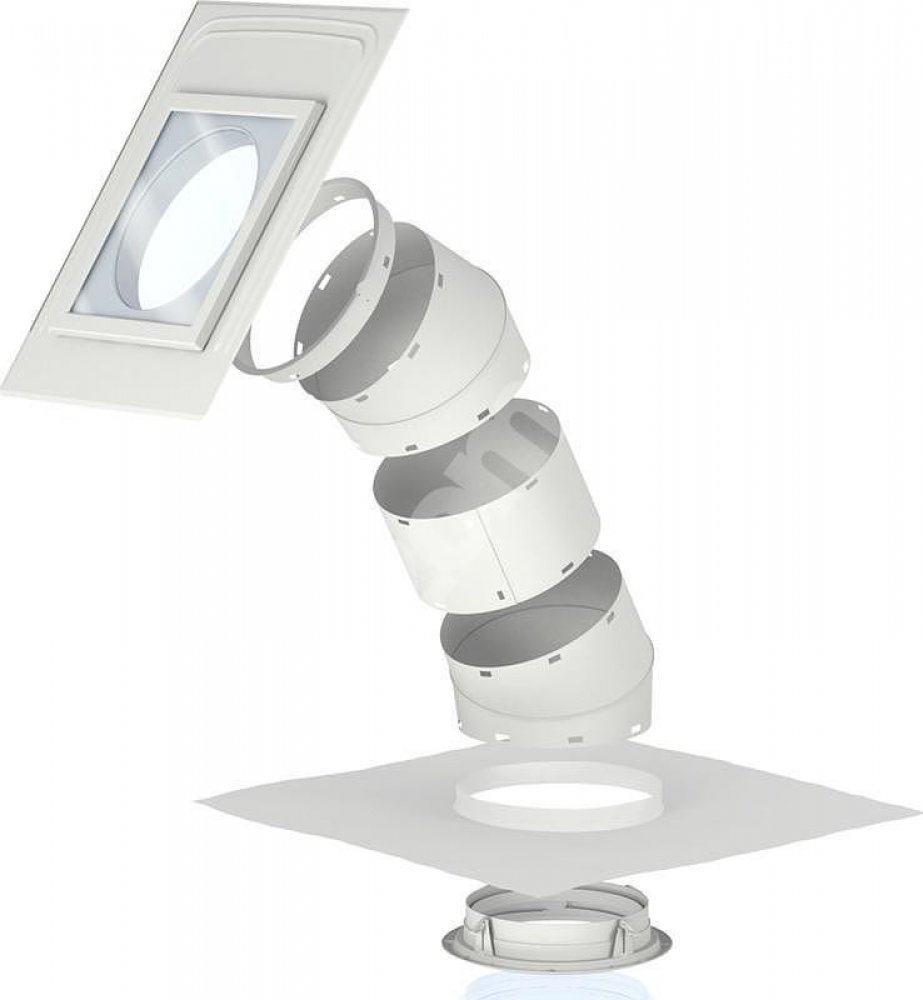 Základní součástí dodávky světlovodu je : Horní Rám, difuzér, rovný teleskopický díl a 2 kolena. Sklon střechy 15°-60°. Na rám s tvrzeným sklem se samočistící povrchovou úpravou a integrovaným polyuretanovým lemováním v černé barvě(pro světlovody TWR) nebo integrovaným plechovým lemováním v šedé barvě (pro světlovody TLR). navazuje tubus o průměru 25cm (světlovody OK10/TLR...