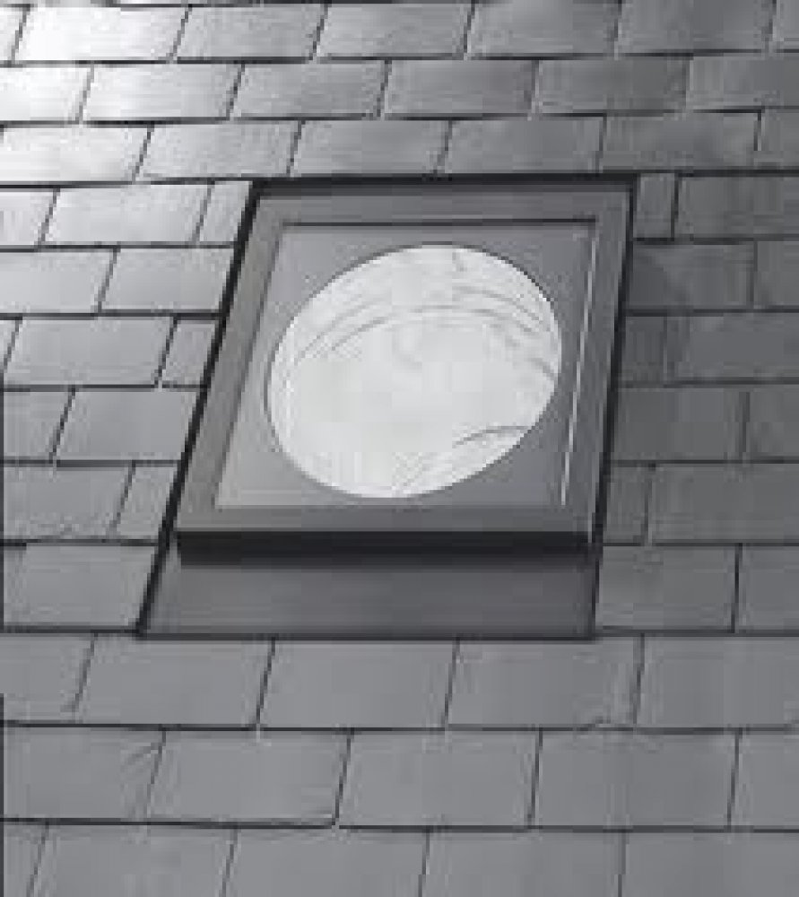 Čtvercový rám pro osazení do střechy vypadá shodně jako střešní okno a neruší tvar střechy.