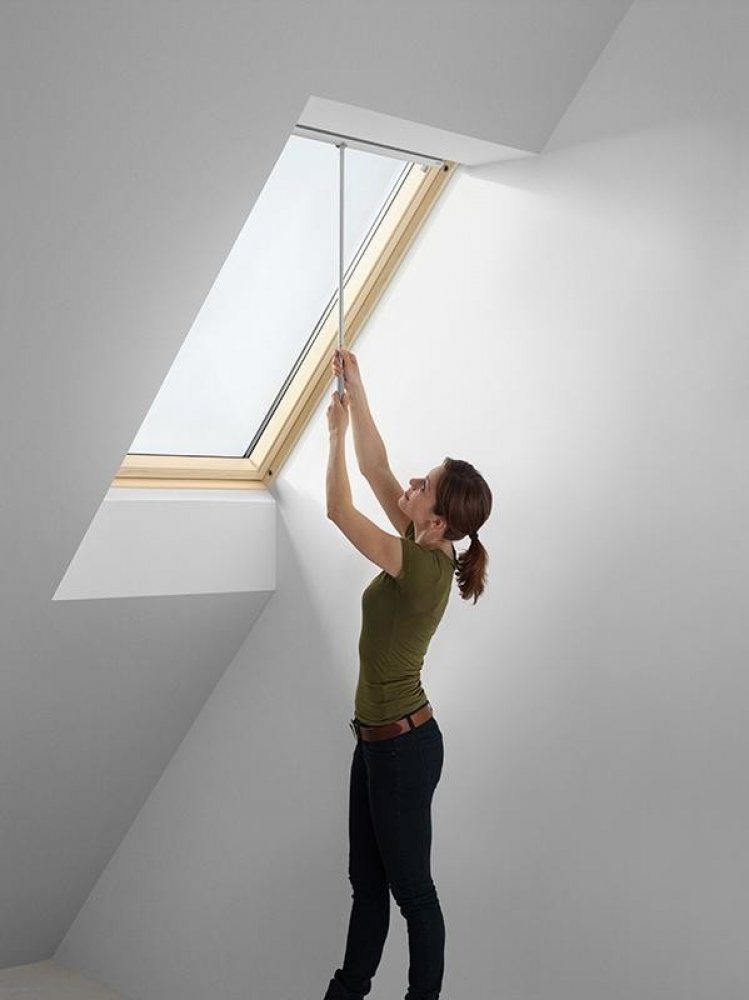Tato ovládací tyč je ideálním řešením v případě, kdy je manuálně ovládané střešní okno VELUX GGL/GGU mimo dosah. Taktéž je možné ji využít pro manuálně ovládané rolety VELUX. V případě použití na rolety doporučujeme na každou umístit adaptér (ZOZ 085).