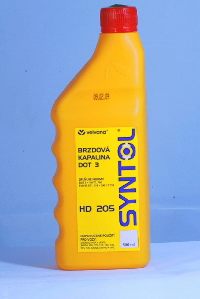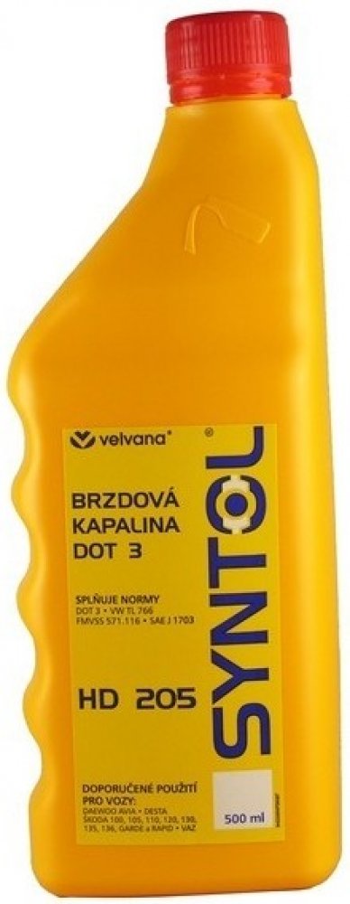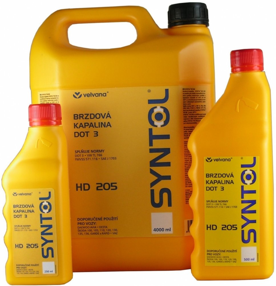 Syntol HD 205. Brzdová kapalina Syntol HD 205 se používá pro všechny hydraulické brzdové systémy motorových vozidel je určená pro těžký provoz v teplotním rozmezí od -50°C až do 245°C.