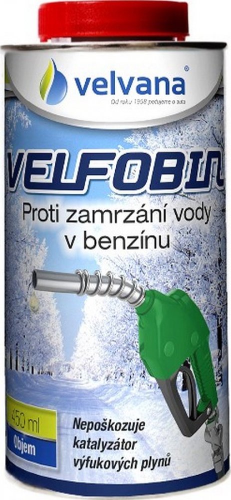 Velfobin slouží motoristům v zimním období k preventivnímu zamezení tvorby mikrokrystalků ledu, vznikajících z vody, obsažené v pohonných hmotách v palivovém systému motorových vozidel.