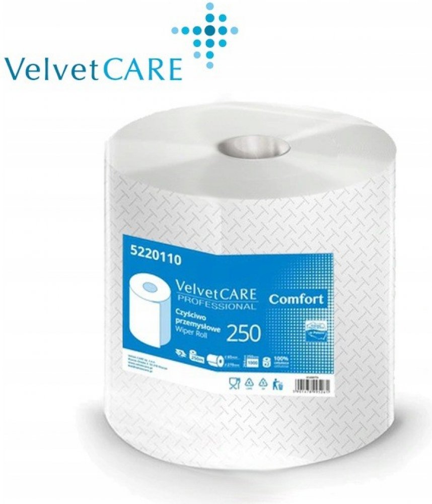 ⭐Velvet 5220110 - Silný, savý jednorázový ručník⭐Čisticí Utěrka papírový celulózový 250 metrů / 1000 listů