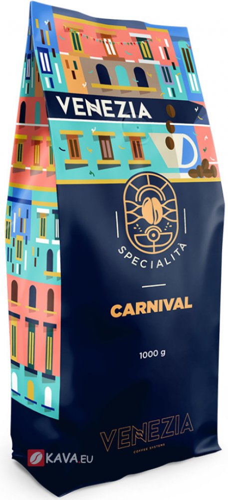 Venezia Carnival je výrazná italská směs s chutí kakaových sušenek, ořechovými tóny a jemným nádechem sušených meruněk. Díky kvalitní robustě neobsahuje téměř žádnou kyselost, má plné tělo a minimální sladkost. Skvělá pro cappuccino, latte macchiato i americano. Zrna pocházejí z Brazílie, Etiopie a Vietnamu.