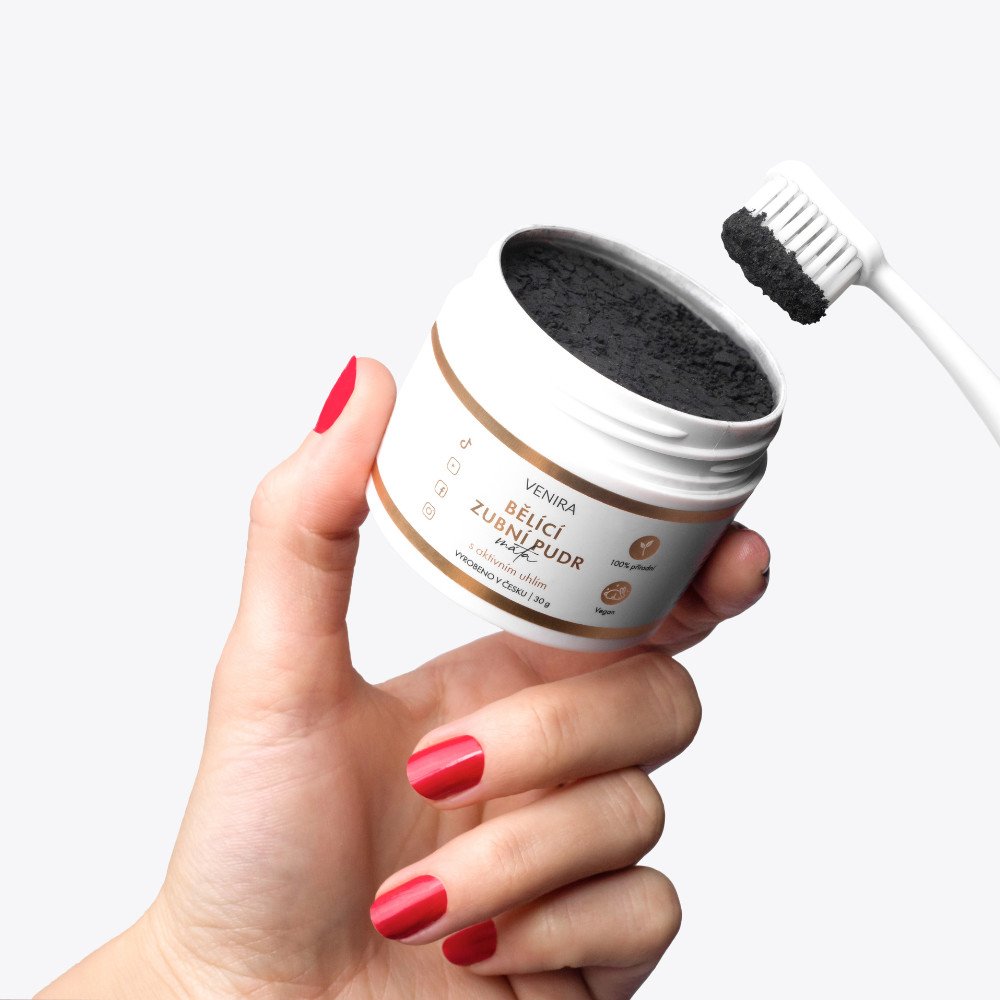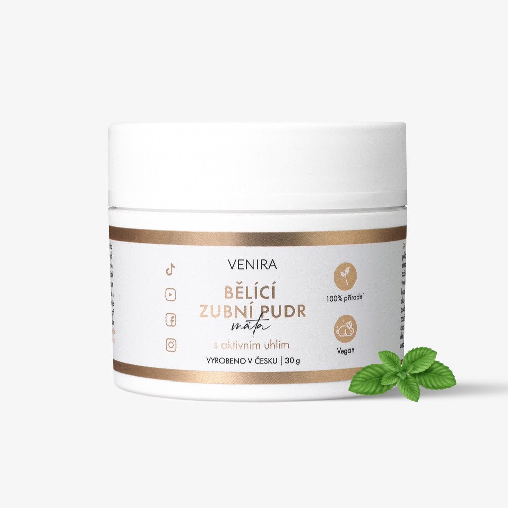 Se SpecKareTM, tedy s aktivním uhlím získaným z kokosových skořápek a maximální šetrností dokonale pečuje o zubní dutinu a zanechává svěží dech díky osvěžující mátě. VENIRA bělicí zubní pudr nejenže bělí vaše zuby, ale také díky kalciu obsaženému ve složení pomáhá posilovat zubní sklovinu a chránit zuby před poškozením.