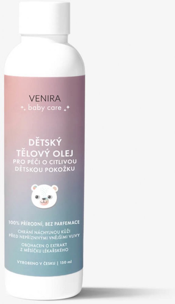 Trápí vaše nejmenší nepříjemné bolesti bříška? Pak pro vás skvělým pomocníkem bude i VENIRA dětský olej na masáž bříška obsahující unikátní kombinaci přírodních a šetrných olejů a extraktů známých pro své zklidňující účinky na pokožku a pro celkovou pohodu miminek. Dokonalým produktem pro péči o vlásky vašich nejmenších bude jemný VENIRA přírodní dětský šampon pro první vlásky šetrný nejen k náchylné dětské pokožce ale i k životnímu prostředí. S heřmánkovým olejem pro krásné, zdravé a hydratované vlásky.
