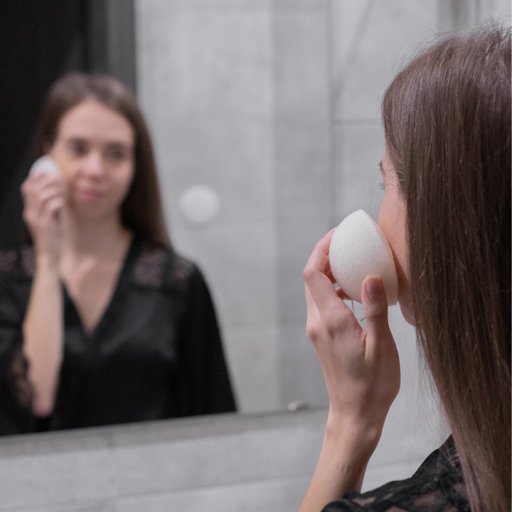 Konjakovou houbičku důkladně namočte do teplé vody, dokud úplně nezměkne. Vymačkejte z ní přebytečnou vodu a můžete začít s jemnou masáží obličeje a dekoltu krouživými pohyby.