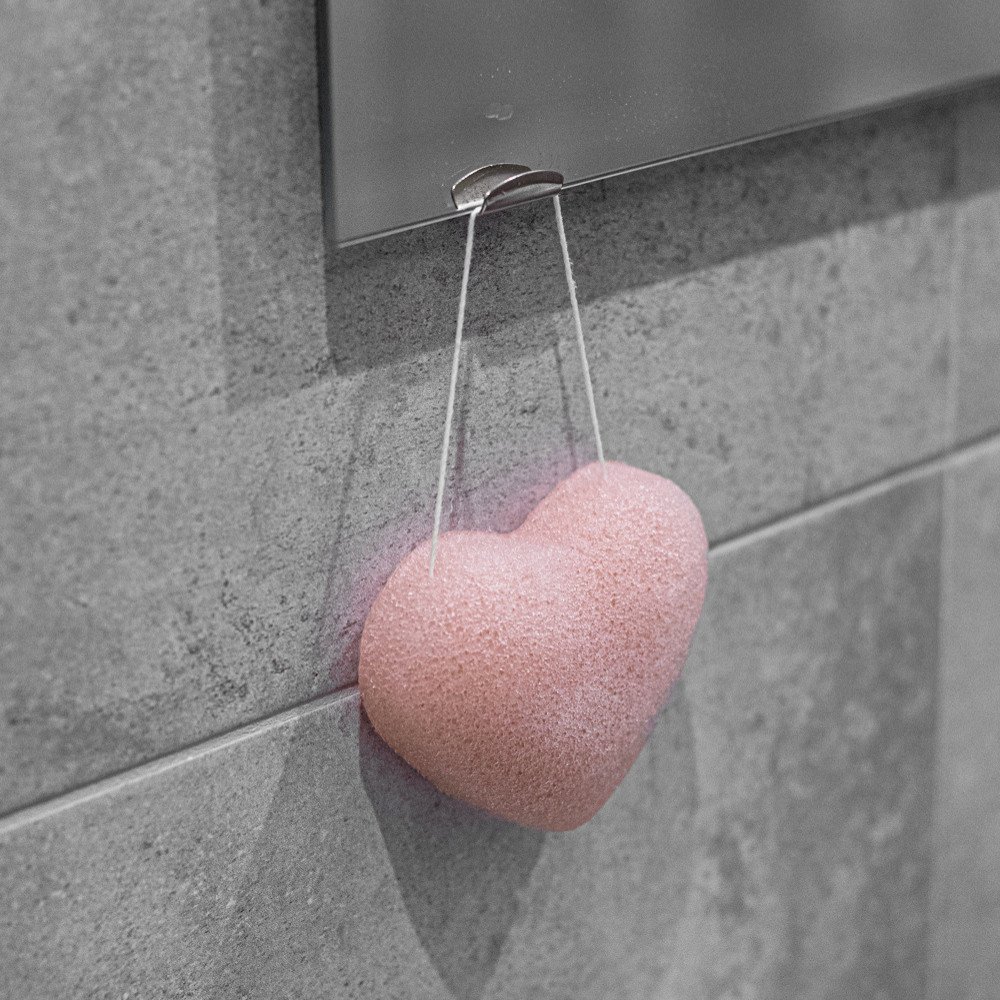 Růžová konjaková houbička s růžovým jílem pro citlivou až velmi citlivou pleť.