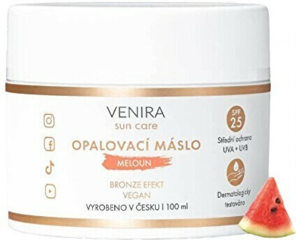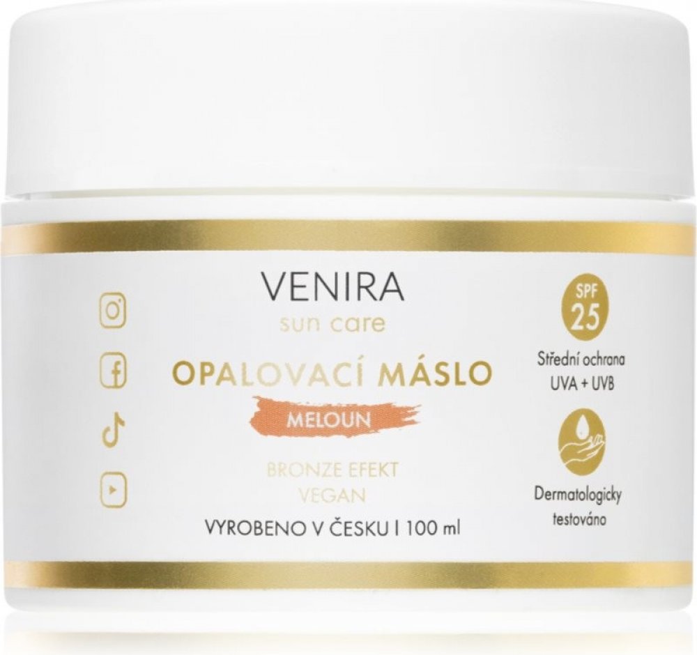Opalovací máslo bronze s SPF 25 čokoláda je vytvořeno s maximální vášní a pečlivostí s přírodními ingrediencemi, jako je slunečnicový olej, olej z katránu etiopského, extrakt z listů rozmarýnu lékařského a beta karoten pro nádherně opálený vzhled pokožky, který vydrží! Navíc ji zanechá krásně hydratovanou, zvláčněnou a hebkou na dotek. Opalovací máslo obsahuje beta karoten díky kterému budete krásně opálené, pokožka bude hydratované. Nechte svou pokožku vyniknout v dokonalé kráse, ať už máte snědnou nebo světlou pleť. Jeho jedinečné složení s ochrannými filtry zajistí, že sluneční paprsky vaši kůži nepoškodí ani nespálí.