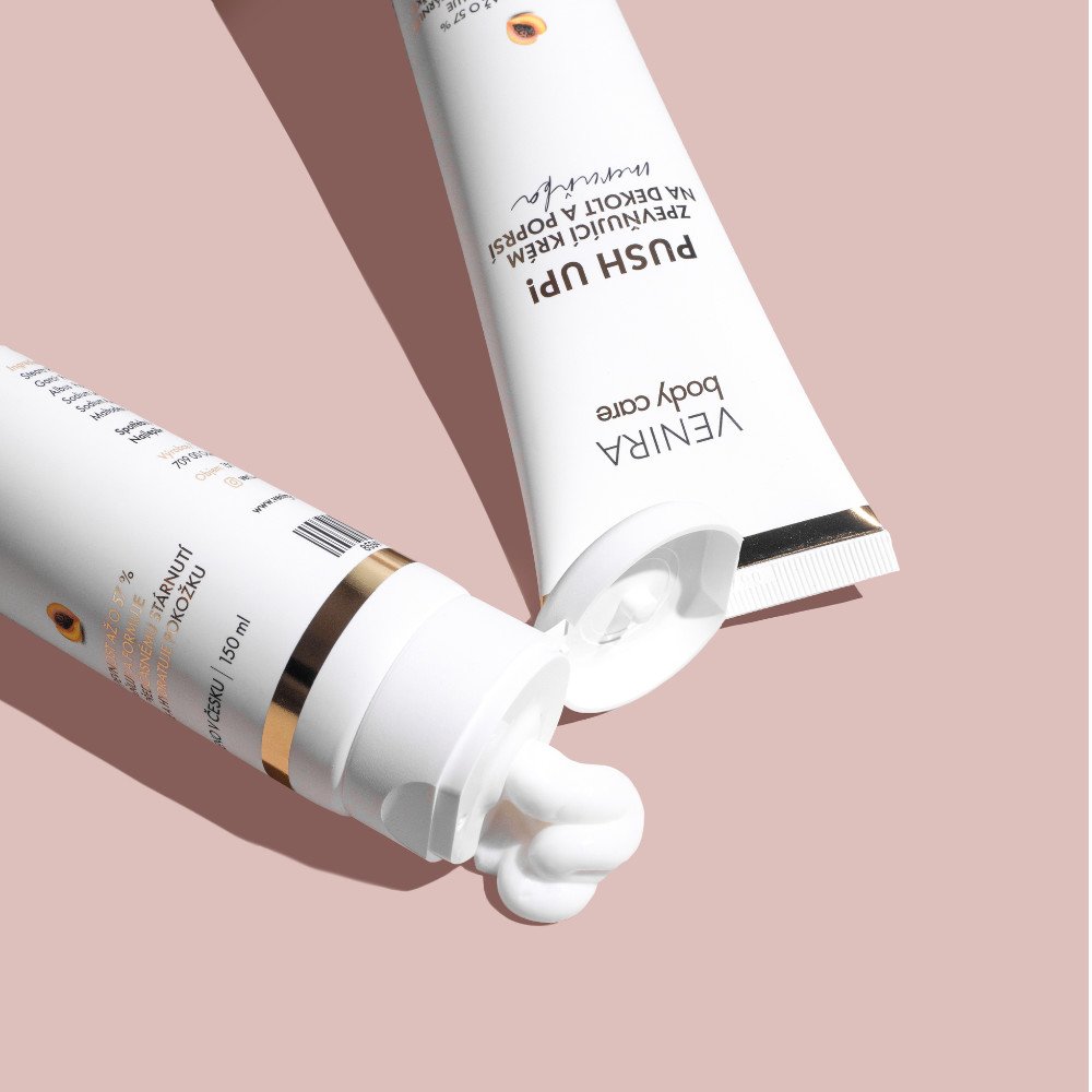 Přirozenou plnost a pevnost prsou můžete podpořit i našimi přírodními kapslemi VENIRA krásná prsa s hydrolyzovaným kolagenem pro podporu pevnosti a elasticity pokožky. Jestliže vás trápí strie na bříšku nebo bocích, pak vám rozhodně pomůže i VENIRA krém proti striím s úžasnou malinovou vůní.