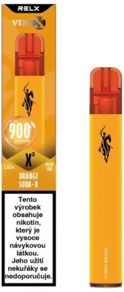 Zářivá a osvěžující chuť pomerančového nápoje s každým potahem. VENIX X2 – Orange Soda-X vás nadchne výraznou ovocnou svěžestí a dlouhotrvajícím zážitkem s 900 potahy.