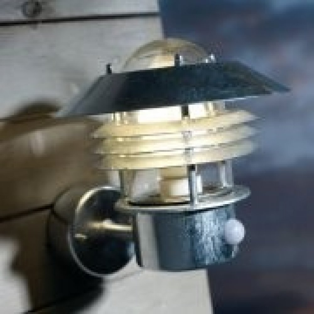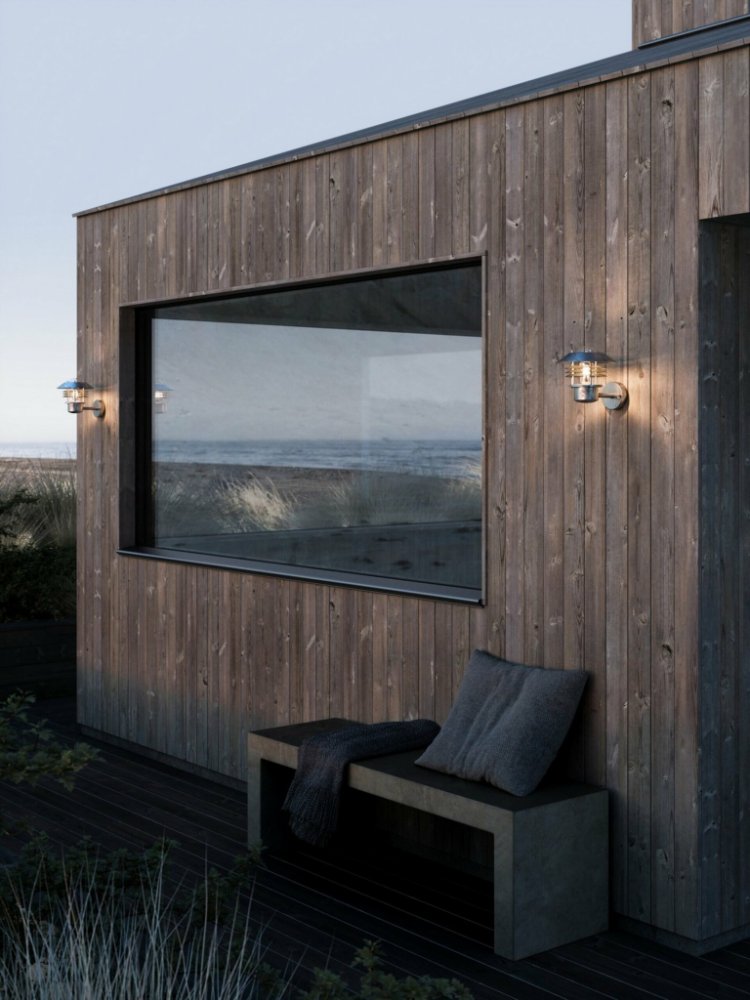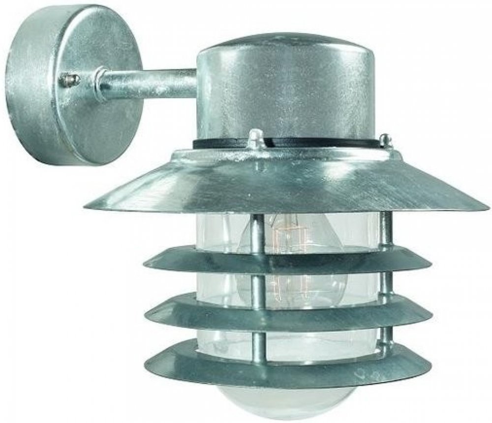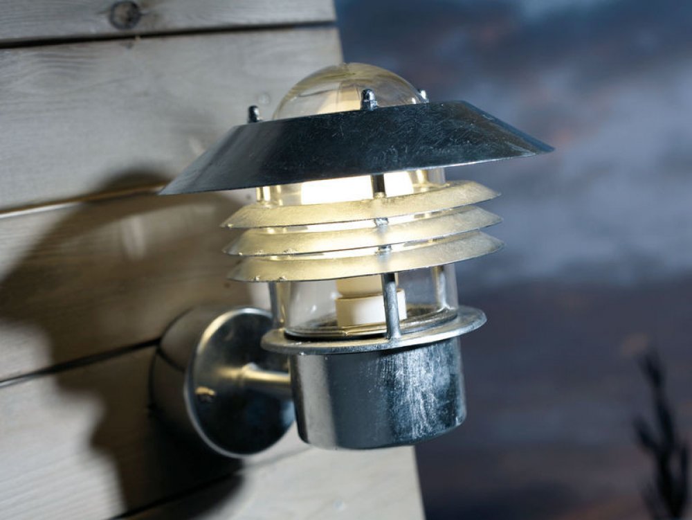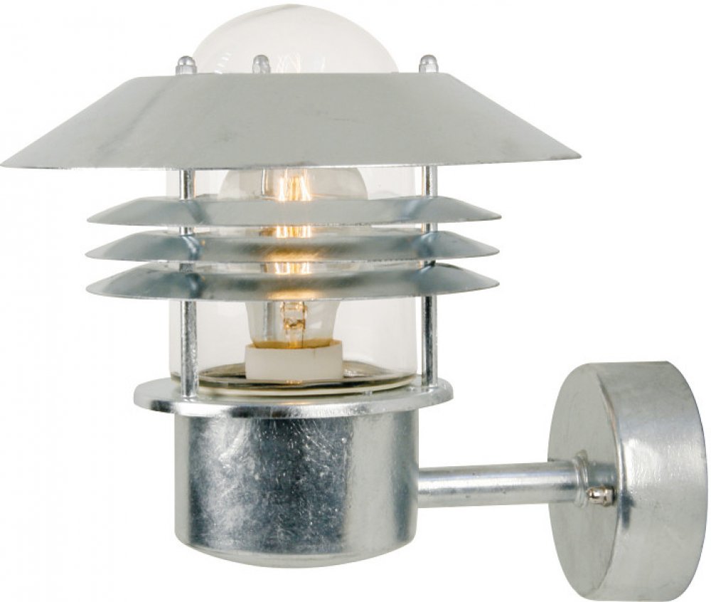 Venkovní nástěnná lampa NORDLUX Vejers Up s kulatou základnou a robustní lampovou hlavou směřující nahoru zajišťuje bezpečné osvětlení terasy nebo vstupu do domu. Hlava lampy je tvořena středovým oblým sklem, stříškou a třemi kruhovými ozdobnými prvky, které dodávají svítidlu pěkný vzhled. Svítidlo je k dispozici v několika různých provedeních.