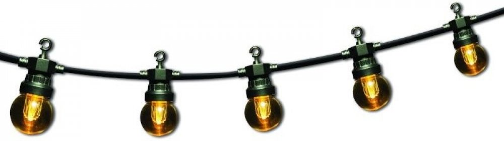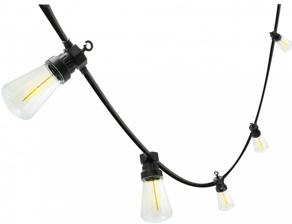 RETRO: Rozšiřitelná světelná girlanda s krytím IP44 15 metrů 20 žárovek LED "Filament" Světelný věnec RETRO obsahuje 20 integrovaných LED žárovek (nevyměnitelných) typu "Filament" v příjemné teplé bílé barvě (3000 K). Skleněné žárovky ve formátu "papaya" (průměr 5 mm) poskytují rozptýlené světlo a mají výkon 0,48 W na žárovku se světelným tokem 55 lumenů každá. Při celkové délce 15 metrů je mezi j...
