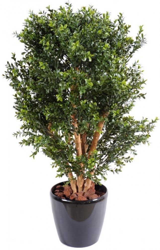 Umělý keř Buxusu je vysoký celkem cca 80cm a má korunou s průměrem cca 50cm. Dokonale provedená imitace skutečného stromu zimostrázu má 4 kmeny z přírodného dřeva a listy vyrobené s přírodní strukturou. Dodáváno v kotvícím květináči 13x12cm. Hmotnost 4,53kg. Lze umístit do exteriéru ale květináč musí mít odtok pro vodu.