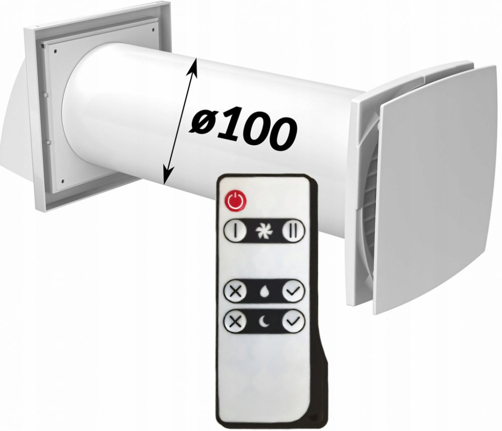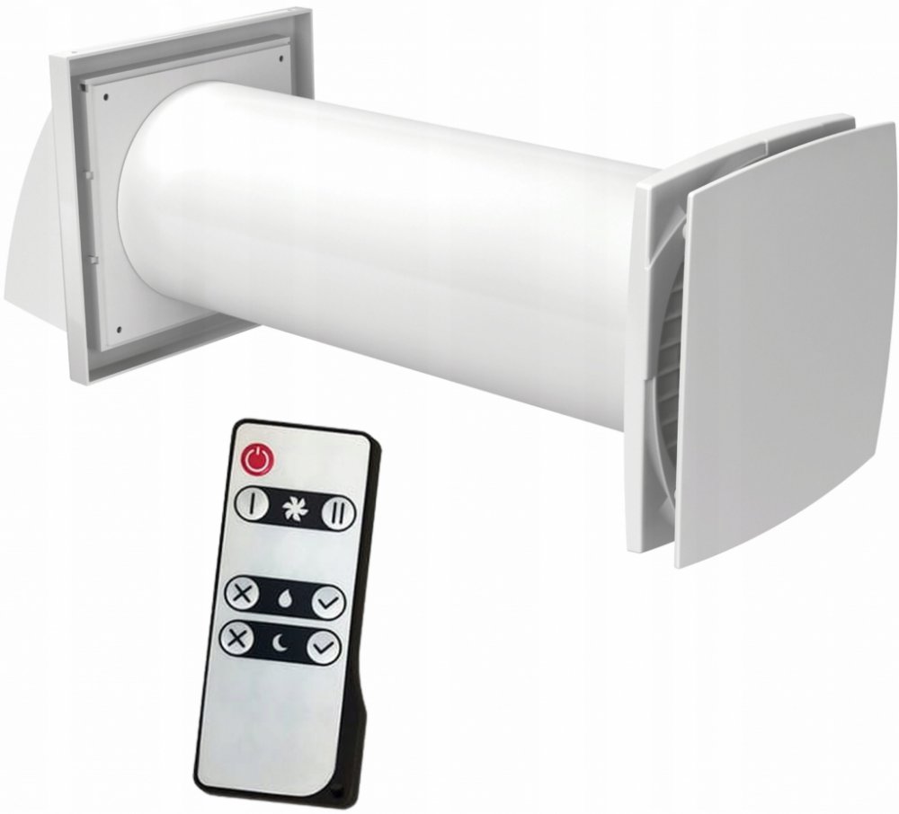 - Dekorativní přední panel ventilátoru vybaveného kabelem se zástrčkou (délka). kabel ok. 170 cm) a regulovatelný senzor vlhkosti (pod předním dekorativním panelem)