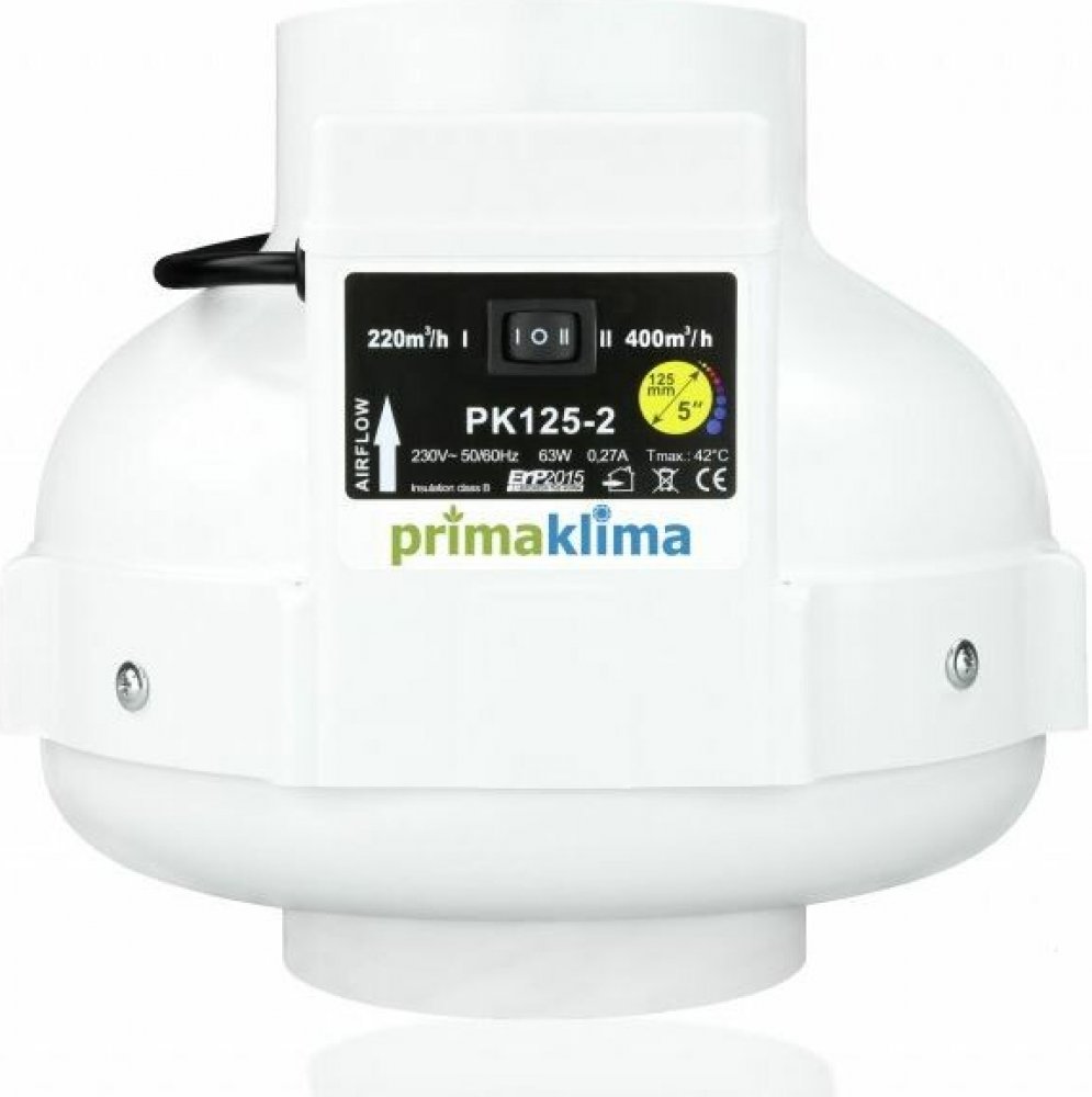 Prima Klima PK125 MES-2 je výkonný dvourychlostní ventilátor s maximálním výkonem 400 m3/h, vhodný pro odvětrávání menších prostor s možností měnit rychlosti a výkon a s nízkou spotřebou energie.
