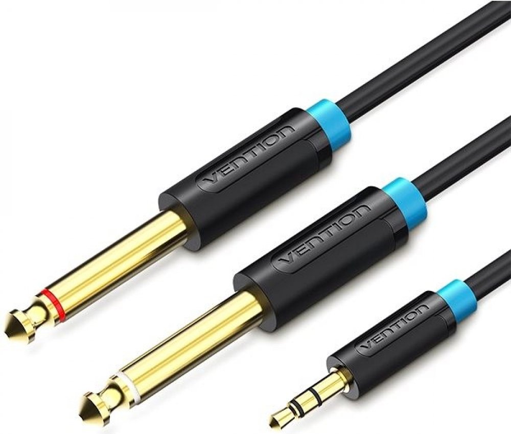 Vention BACBJ 5 m audio kabel TRS 3,5 mm samec na 2x 6,35 mm samec (černý).Tento kabel s konektorem TRS 3,5 mm samec na 2 konektory 6,35 mm samec poskytuje spolehlivé a efektivní připojení mezi vašimi zvukovými zařízeními, jako jsou mikrofony, hudební nástroje, zesilovače a další. Pozlacené konektory zaručují čistý zvuk bez šumu a rušení a díky robustní konstrukci z PVC je odolný proti opotřebení ...